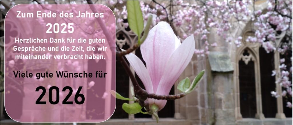 Gleichzeitig wünschen wir allen Auftraggeberinnen und Auftraggebern, allen Kolleginenn und Kollegen und allen Besuchern unserer Website ein schönes Weihnachtsfest und einen ruhigen Übergang ins kommende Jahr. Wir bedanken uns für die vielen guten Gespräche und die gute Zusammenarbeit und freuen uns darauf, Sie alle in 2026 wieder zusehen.
